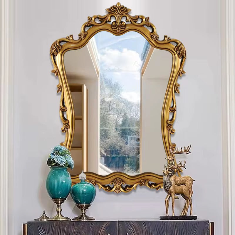 Elevate your interior with timeless elegance. This Ornate Gold Vintage Wall Mirror features an intricately carved frame with a luxurious antique finish, adding a touch of opulence to any room. Its classic baroque-inspired design makes it a stunning focal point for living rooms, hallways, dressing areas, or boutique spaces.